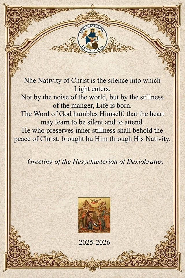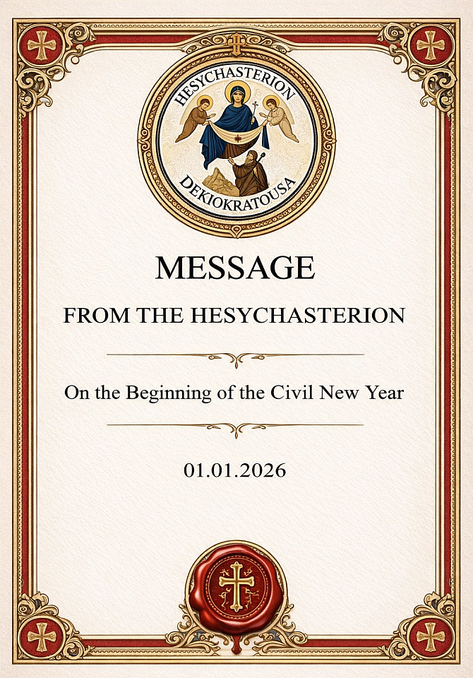 The Hesychasterion, living in silence and prayer, does not celebrate the passing of time, but prays for those who live through it in labor, sorrow, and hope. We pray that the Lord may grant peace to hearts, strength to the weak, comfort to the afflicted, and light to those who seek the truth.