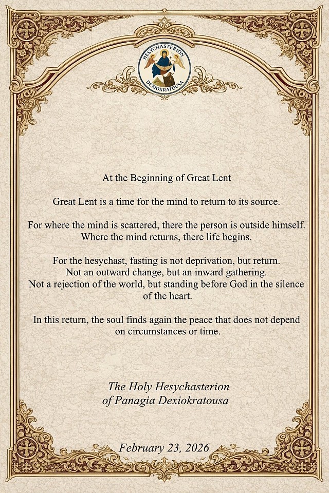 Entrusting all the faithful children of Christ to the mercy of God, the Hesychasterion bears witness: salvation is found in the stillness of the heart, in patience and faithfulness, and not in outward success.